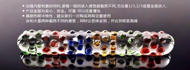 琉璃魔棒水晶阳具,直径2.7厘米,长度17厘米,做工相当不错,安全、华贵、新颖、玲珑剔透,非常漂亮,特别是完全没有一般器具的硅胶气味,干净便利;而且还可以加热或者冷冻后使用,冰火刺激,也适合当手工艺品送人,新潮特别!