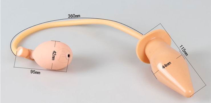 充气膨胀后庭扩肛器使用无毒硅胶材质制作,可以透过汽囊的作用,使后庭栓增粗,让你根据自己的喜好自由选择它的大小,到达高品味的渴望与需求,本品全长为43公分,有效长度为11厘米,直径为 1.5-4.5厘米,专为你的不同需要而设计,后庭扩肛器上窄下宽的子弹型设计,内部坚挺有力,外表面光滑柔软、弹性十足,使用时非常顺畅,精心呵护你的娇嫩部位,气囊的起伏让器具更粗壮,轻按气囊边的小汽阀,它立刻会恢復到原始的大小,让你自由变换大小,体验不同方位的性爱!