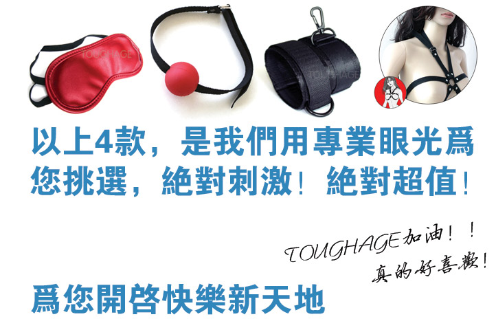 SM器具四件套是玩性虐必备套装,想玩另类不知从何入手?对你来说SM只是个传说?现在为你推荐4款超实用宝贝,口塞+眼罩+手铐+乳束,另类玩法绝对带来另类刺激!