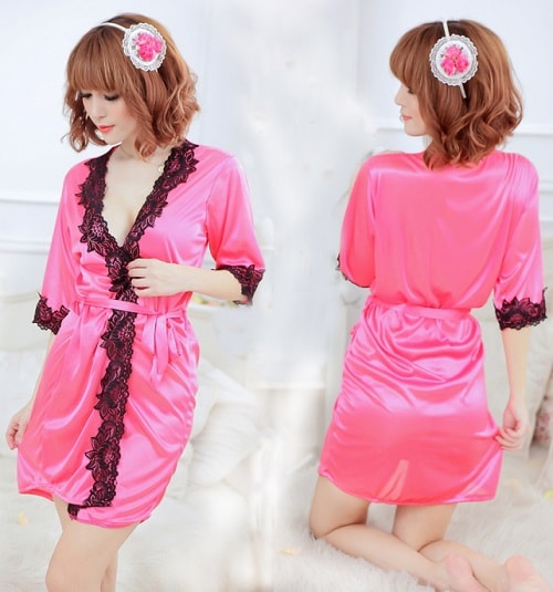 冰丝花边透明薄纱睡裙,腰带式对身材无要求,白色、玫红、粉色、蓝色、紫色,柔情满分性感透纱睡袍浪漫豋场,半透明梦幻粉色的薄纱材质,影影约约包裹著散发诱人魅力的美丽身躯,成熟性美的风格,魅力无穷的呢!薄如蝉翼的柔纱让身形显得更加姚窕轻盈,让你的他心动不已。