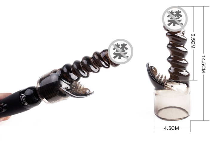 AV棒专用G点攻击套整体为透明软胶材质,螺旋的造型可深度刺激女性阴道内部,棒体可插入长度13厘米,头部直径3厘米,底部内径4.3厘米,产品微有弹性,适合头部直径在3.8-4.5cm的av棒。