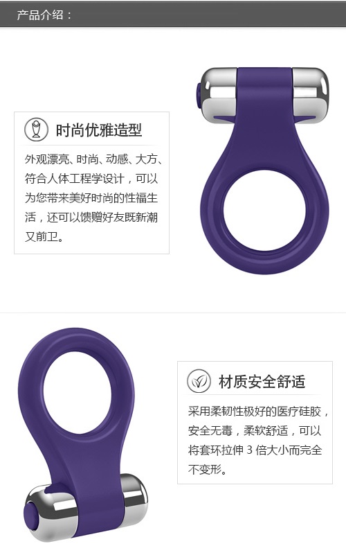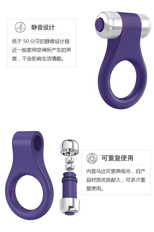 延时锁精震动环使用高震频超静音震动器,加上硬质金属表面,可最大限度传递震动;震动锁精环全身防水,淋浴时亦可正常使用哦!而且电池方便更换,质保15年,是适合每一个人的情趣玩具;延时环对阴茎产生紧箍作用,可有效延缓射精,从而延长性交时间;锁精环能减缓阴茎静脉血回流速度,但不妨碍动脉血的泵入,从而起到增大增硬的效果;震动环还能震动刺激男女敏感部位,激发性欲,帮助高潮,提高性生活质量!