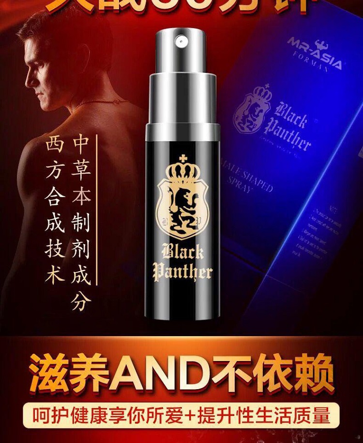 黑豹三代延时喷剂专门针对中国人的体质而研发,它能起到局部粘膜作用降低生殖器敏感度,对各种原因引起的早泄有显著改善功效,可延长做爱时间30分钟以上,非常适合包皮过长和射精过早的男性使用!黑豹三代100%采用纯天然草本植物原液,不含麻醉剂和西药成分,无色无味、不麻木、可口交、不影响勃起、没有副作用、对身体没有危害,黑豹三代和二代的区别主要是在配方上进行了升级改良,新添加了蛇床子、苦参、冰片、丁香等多种名贵草本精华,比黑豹二代效果更好并且更容易被人体吸收,是非常可靠且值得信赖的男士外用延时产品。