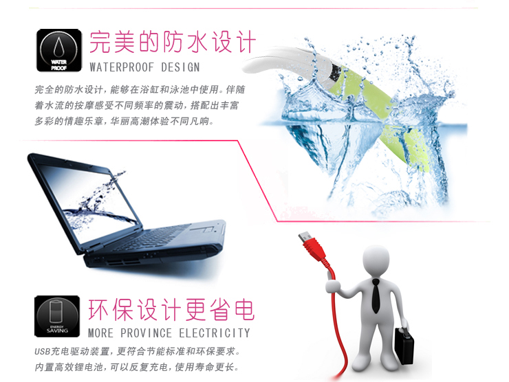 | 特点 | USB充电 100%防水 无毒无异味 |