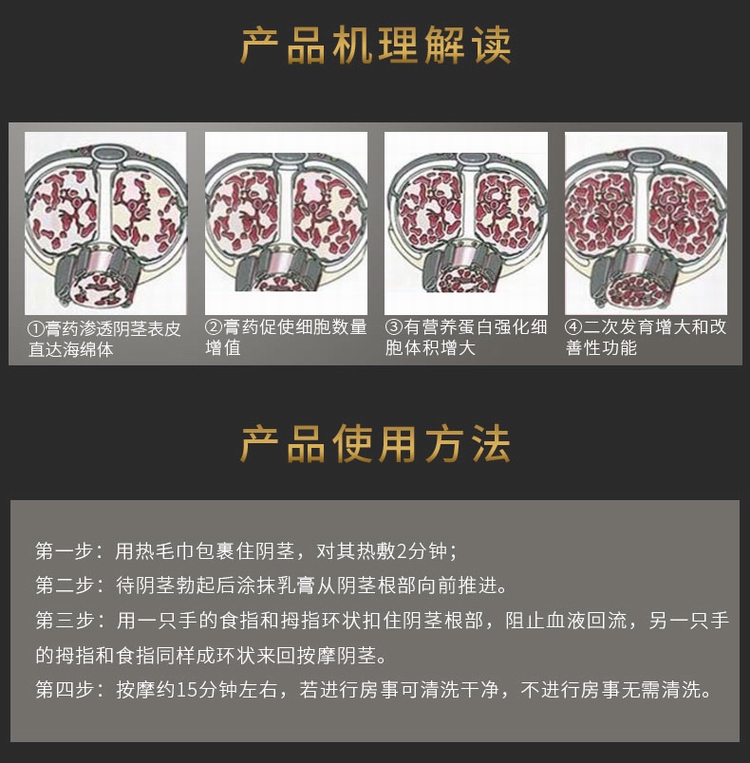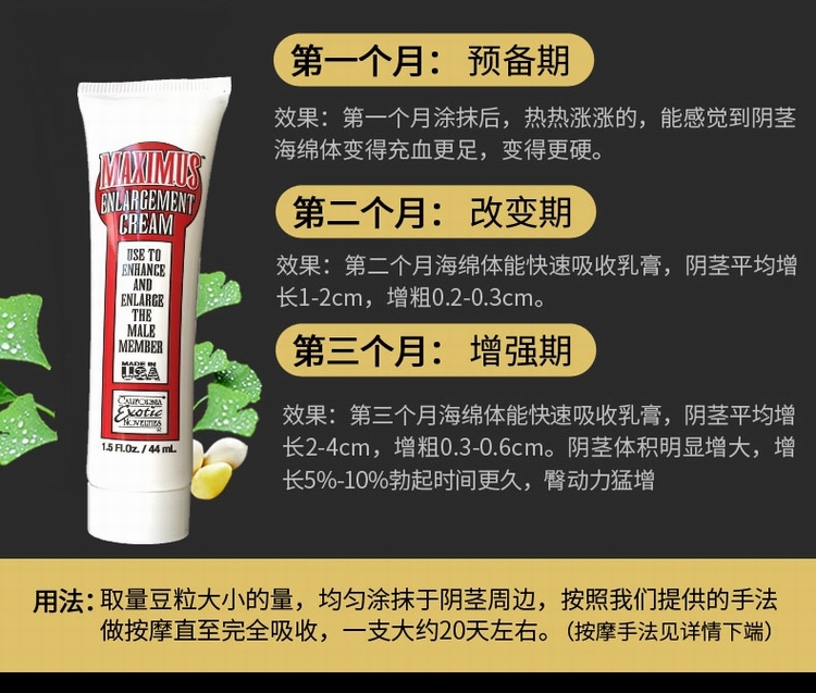 | 用法 | 每次取1ML涂抹于阴茎表面并按摩20分钟 |