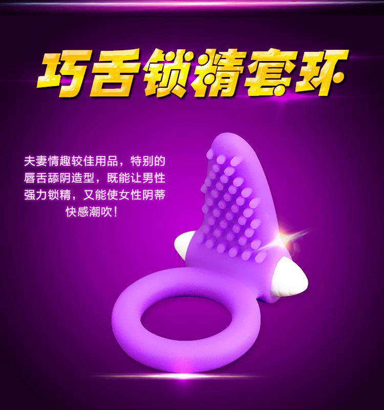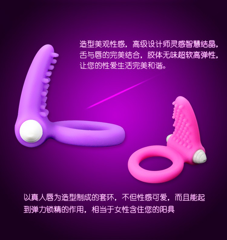 延时震动环使用进口环保医用材料制成,无害无毒无异味,柔软度和弹性极好,套在任何尺寸的阴茎上都不会感受到不适,将它套在阴茎根部,在延时锁精的同时,双方都能感觉到强烈的震动刺激提高性快感,柔软的唇舌舔阴造型设计在震动器的拍打下能有效刺激女性阴帝,让女人高潮迭起,情趣套环采用全身防水设计,浴缸和泳池都是它的战场,低于30分贝的超强静音更是让你为所欲为,是夫妻调情和延时必备的延时震动器。