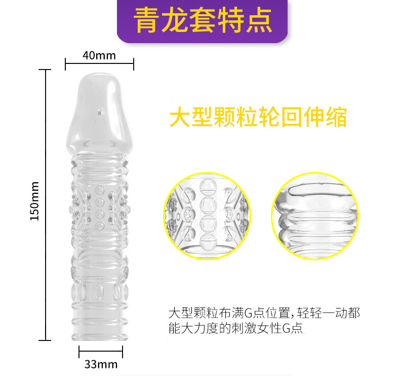 青龙狼牙水晶套,世界上最完美的刺身龙呤设计,通过日本10000多名AV女优的性爱测试,G点每增大0.01个毫米,女性高潮即提前30秒,让每一位女性都能感受到超大的颗粒的轮回伸缩感,青龙套专为寻找高潮的女性设计!它坚挺圆润的颗粒感是史无前例的表现。带上它,如猛龙下山,似波涛奔腾,让她体验你的强悍!