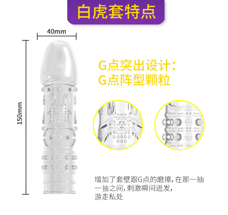 白虎狼牙水晶套,是专业为女性快速寻找G点的性爱水晶套,其采用G点突出,龙纹环绕,在抽动中不定时接触G点,让每一位女性感受G点的魅力,其独一无二的开发,打破了传统水晶套的单一造型,让很多女性为其前所唯有的外观,感到惊叹。
