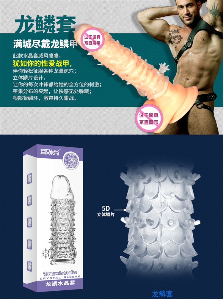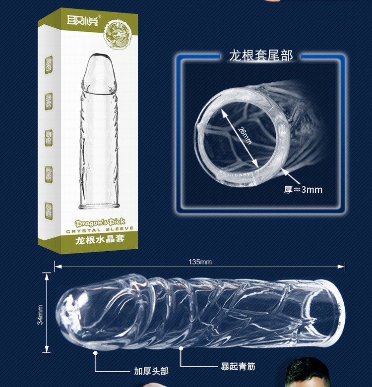 龙根水晶狼牙套,血脉喷张,让你瞬间信心爆棚,让女人春心萌动,仿真暴起青筋给她汹涌快感刺激,加厚头部设计降低龟头敏感度,紧绷套身设计阻止热血回流,销魂抽插随心所欲!