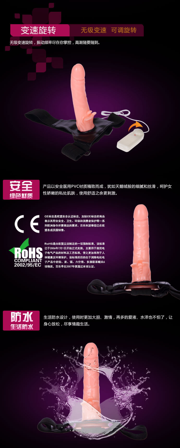 | 包装 | 穿戴皮裤+电动空心阳具+控制器 |