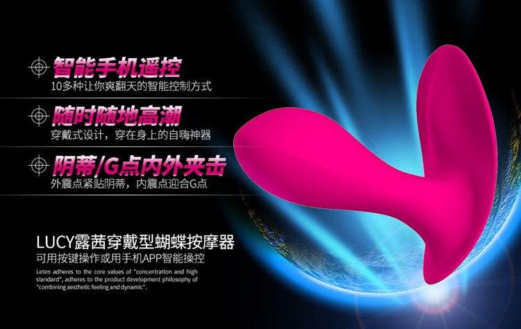 无线遥控穿戴蝴蝶按摩器是一款智能女性电动玩具,手机APP遥控,内外双震马达,1.8倍强悍震力带来的愉悦无法抵挡,可同时刺激阴蒂和阴道,让女人享受双重快感!