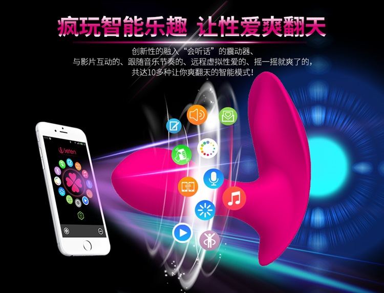 无线穿戴蝴蝶可用智能手机随意遥控,随着互联网时代的到来,性用品也进入了智能时代,这款雷霆手机APP远程遥控智能穿戴蝴蝶,开创独特体验,专为感性女人而生!超越现实的远程互动,即使老公在国外,都可以通过APP进行远程虚拟性爱,让爱不在有距离!如果你还不明白,说简单点就是老公可以在国外通过手机APP来控制穿戴蝴蝶!
