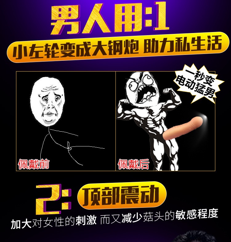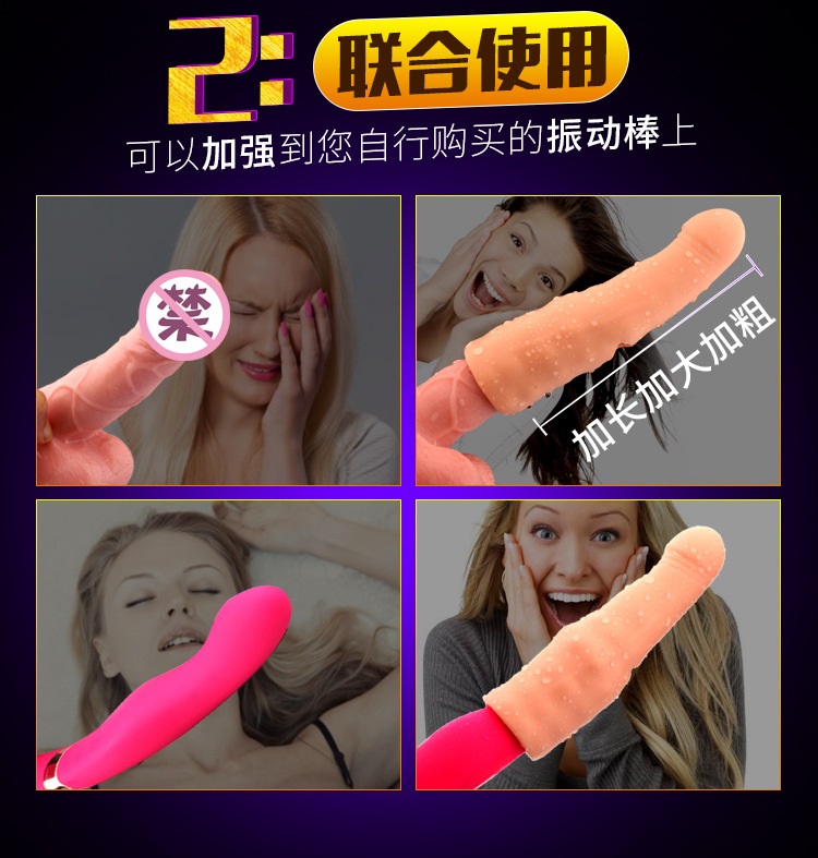 男人为什么购买它,因为女人都喜爱大鸡鸡,一套多用,男人带上立刻让阴茎增长8厘米并增粗1厘米,小左轮变大钢炮,助力私生活,其实她离高潮只差一点点,带上它让您事半功倍,变身猛男,让她水流不止,让您的伴侣高潮连连!阴茎套内部带有狼牙颗粒触点,就像一个带有震动功能的飞机杯,长期使用可以减少男性龟头的敏感程度,从而达到延时锻炼的效果。