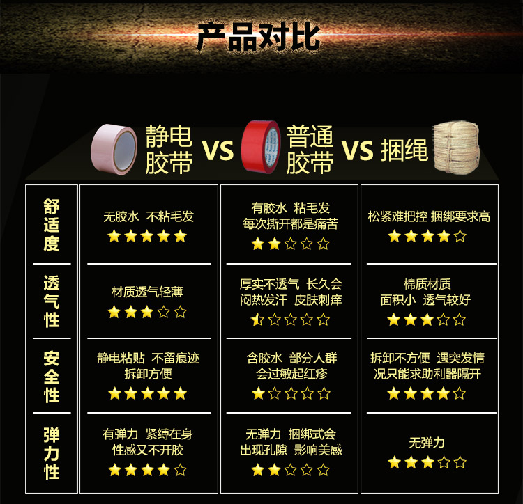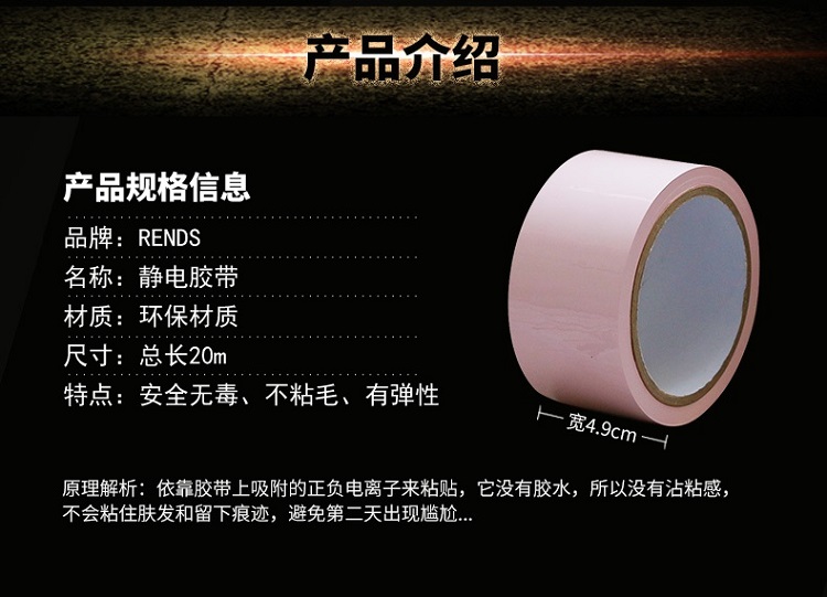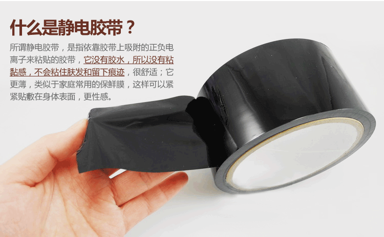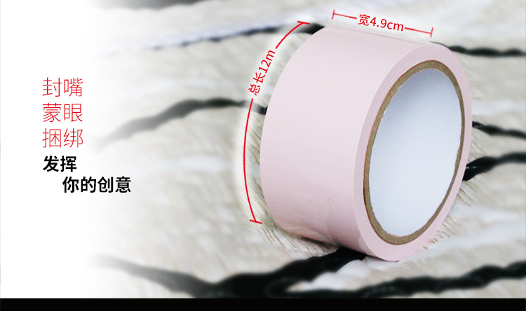 sm玩具静电胶带是进行sm捆绑束缚游戏的利器,对资深sm玩家来说应该很熟悉,在日本和欧美成人影片中基本上都有使用,原理是依靠胶带上吸附的正负电离子来粘贴的,因为没有胶水,所以不会粘住肤发留下痕迹,也不会感觉到疼痛,使用后不需要清洗,静电胶带采用医用材质,无毒无味,安全环保,柔软有弹性,高光泽,全长20米,宽度为5厘米,厚度超薄类似于家庭常用的保鲜膜,可以紧紧贴敷在身体表面,可用在口、眼、手、脚等全身各部位,基于以上特点,各种玩法就看您自己开发了,既可以遮目、封嘴、束手、缚脚及全身捆绑,还能将器具固定在身上,使用方法非常简单,想贴哪里就贴哪里,享受前所未有的刺激感。