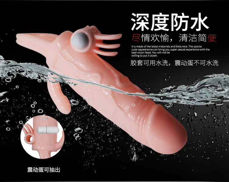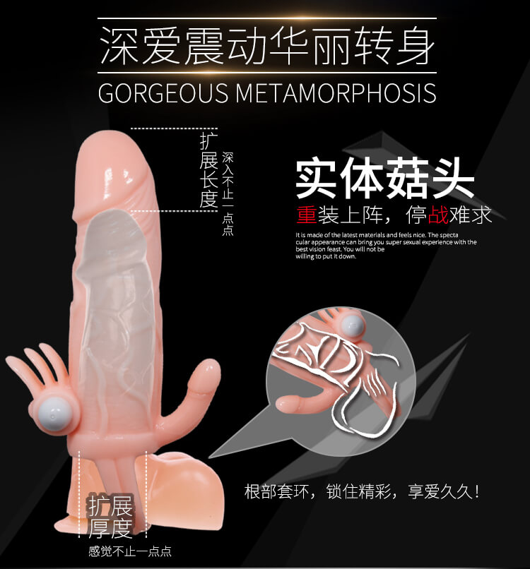 回魂钩三重刺激震动套是百乐公司出品的加长加粗锁精延时阴茎套,实体菇头可加长阴茎3厘米,4毫米的套壁厚度可加粗阴茎0.8厘米,尾部的锁精环能延长做爱时间!根部前方的按动式震动器可刺激女性阴蒂,后方带有一个小阴茎能刺激女性菊花,轻松让你有体会深爱与酥麻,仿真亲肤的材质柔软弹滑穿戴舒服,可深度防水让你尽情欢愉,清洗干净后可重复使用。