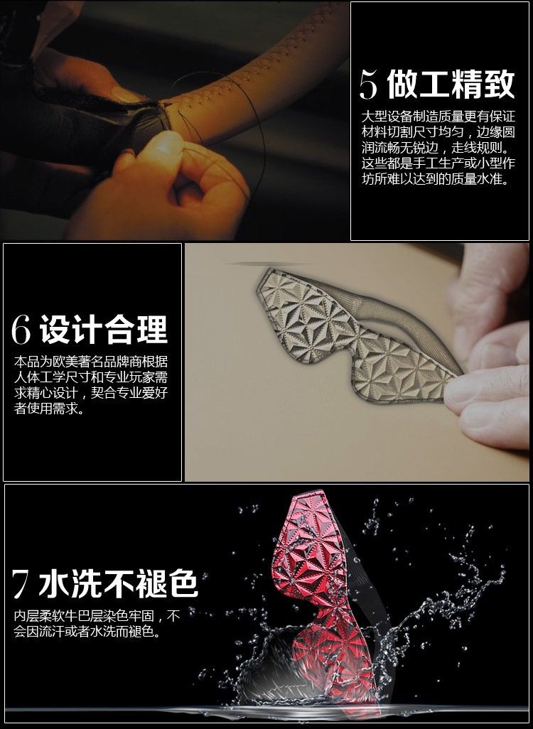 阿芙拉SM用品情趣眼罩采用高档PU皮制成,全长19厘米,最宽处5厘米,做工精细,钻石纹路凹凸设计呈现出3D立体视觉感受,内衬使用柔软面料,佩戴舒适,弹力松紧可随意拉伸调节,完美贴合住眼睛,无扎边不伤眼睛,黑夜降临,用情趣眼罩蒙上女人的双眼,让她不知道你下一步要干嘛,人类对于未来事物的不确定和好奇,会让她格外兴奋,极易达到高潮,它将带领你进入火热的情欲与刺激的幻想。