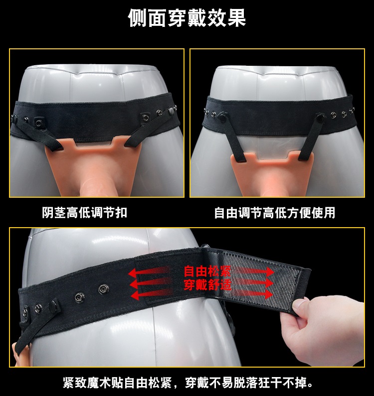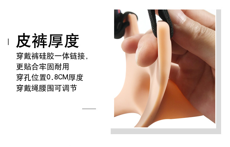 男用空心阳具穿戴裤上面有一个高级硅胶柔软阴茎套,采用高档医用硅胶材质精制,柔韧亲肤舒适度超好,可任意弯曲不变形,外层柔软逼真内部强悍挺拔,弹力头部设计进出活动给力,实心龟头长达5厘米,带储精囊方便排精和排出空气,其余部分均为空心可将阴茎插入其中,底部为漏蛋蛋的设计舒适透气,带上后立马让你阴茎增长5厘米并增粗1厘米,一秒变猛男从此再也不怕射的早,再也不怕JJ小!一体包胶无缝成型,阴茎套外形逼真细腻,不黏腻耐折腾,易清洗打理,不沾灰尘,厚度5毫米的硅胶可以降低龟头敏感度,从而达到物理延时的作用,穿戴裤有高低调节扣,紧致魔术贴自由松紧,佩戴简单,自由调节高低方便使用,满足不同身材需求,穿戴不脱落狂干不掉。
