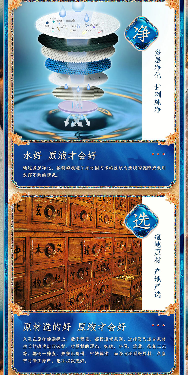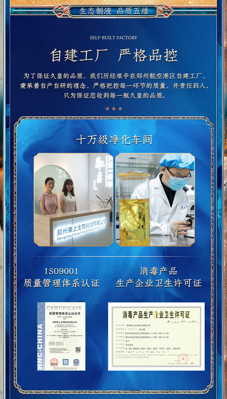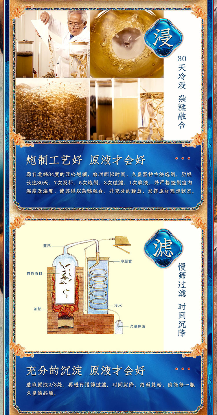 炮制工艺好,延时喷剂的原液才会好,久皇坚持古法炮制,历经长达30天,7次投料,5次炮制,3次过滤,1次取液,并严格控制温度与湿度,使其得以杂糅融合并充分的释放,发挥原材理想状态!最后选取原液三分之二处,再进行慢筛过滤,时间沉降,终而复始,确保每一瓶久皇的品质!
