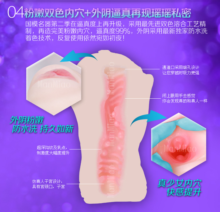 瑶瑶宝贝名器倒模使用高级肉感材质SRFS材料打造,完美还原了瑶瑶宝贝真人阴道,肌肤莹润白透且弹力出众,无任何异味,倒模内部采用高逼真3D无次元技术通道,非贯通设计,独有金三角饱满少女外阴,粉嫩的含苞待放,真少女内穴,阴道内有依稀突起的G点,超深沟纹及乳点,刺激度大幅度提升,名器仿照真人子宫设计,具有宫颈口,子宫通道口的细孔让你穿越时吸力更强快感提升,闭上眼睛,你会发现瑶瑶宝贝就在你身下,这一切只为给你一个真实的瑶瑶宝贝,仿真自慰器创新双电动设计,震动更强刺激更深,倒模的粉嫩双色内穴及新一代防水洗粉唇着色,逼真再现瑶瑶私密,缩阴设计一脉相承,穿越间独享高潮紧夹,是世界上迄今为止第二款有高潮的名器,让你享受缩阴时的极度快乐,成就男人梦想……