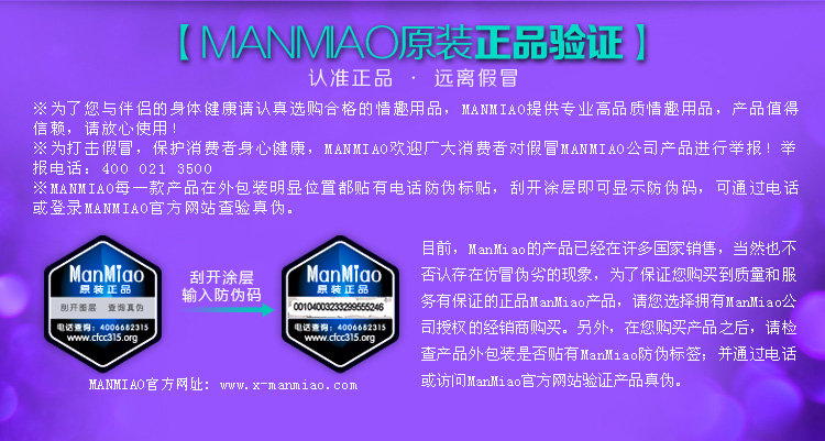 | 保障 | 奇趣阁商城所售漫渺产品均为官方直供的原装正品,支持全国配送,保密送货上门,如有质量问题7天包退换。 |
