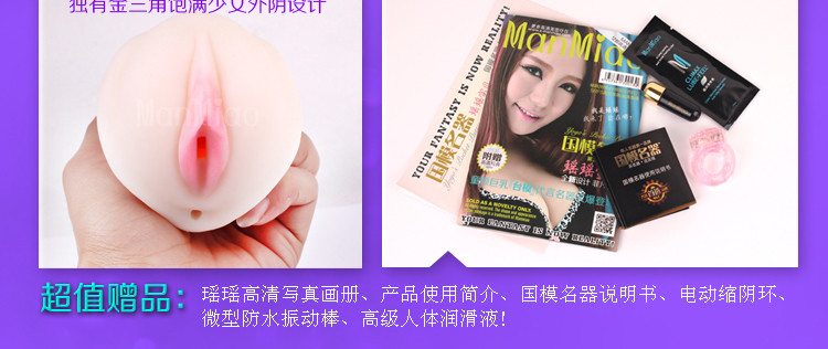 本品除了仿真硅胶名器倒模外还附送电动缩阴环、无线迷你振动棒与高级人体润滑液,更有瑶瑶宝贝12P高清写真,你值得拥有!