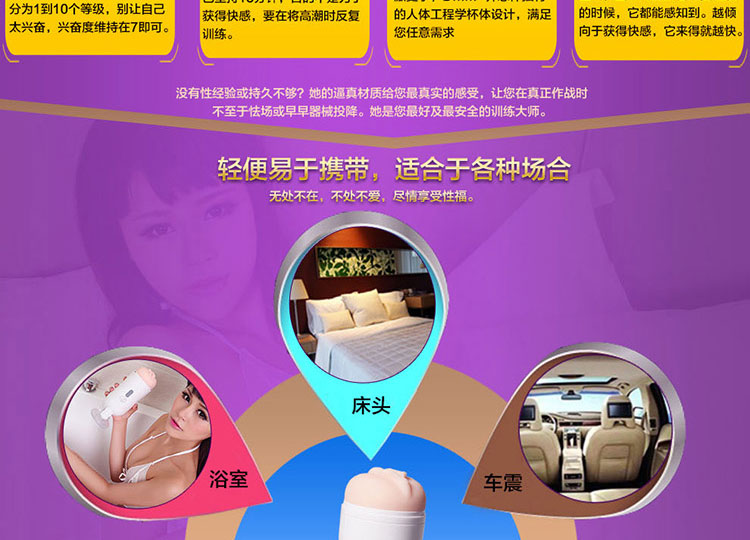 电动飞机杯采用三维立体真人倒模设计,私处入口玉门螺旋纹理清晰可见,粉嫩内穴再现逼真少女真实阴部,让你与嫩模尽情欢爱,享受嫩模阴道的逼真快感,体验更接近真实的感受!
