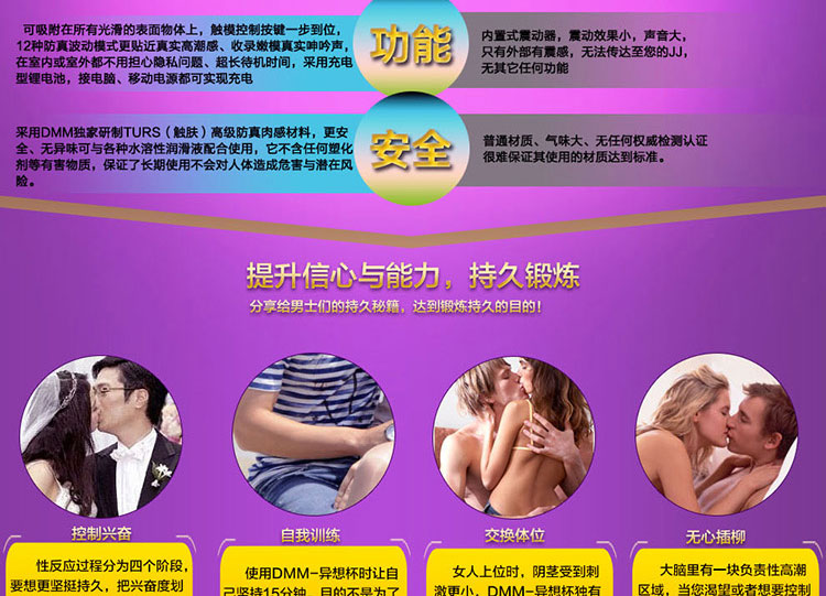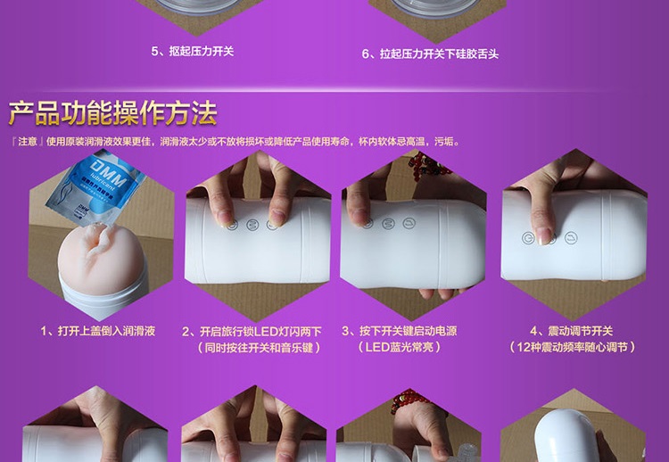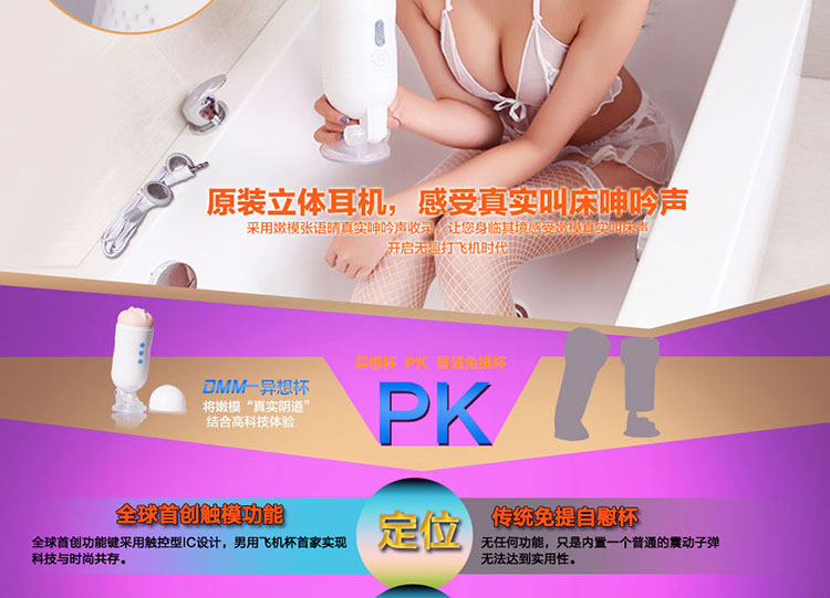 DMM智能电动飞机杯是全球首款触控震动型会叫床的男用飞机杯,根据中国嫩模张语晴肉穴1:1复制而成,采用TURS高仿真肉感材料,质感接近真人肌肤,能媲美真实女阴收缩舒张,紧握感更超过真人!