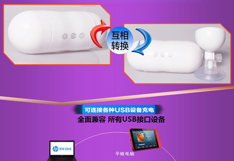 电动飞机杯拥有超大吸盘,吸附力更强劲,可吸附在任何光滑的表面上,大范围160度的体位角度,底部吸盘可以取下,手持和吸附可随意切换,体验嫩模带给你不同体位的快感!USB快速充电,所有USB输出口均可兼容!LED蓝光控制键,高科技触摸控制系统,更方便操作!一年质保,厂家直接售后,无后顾之忧!
