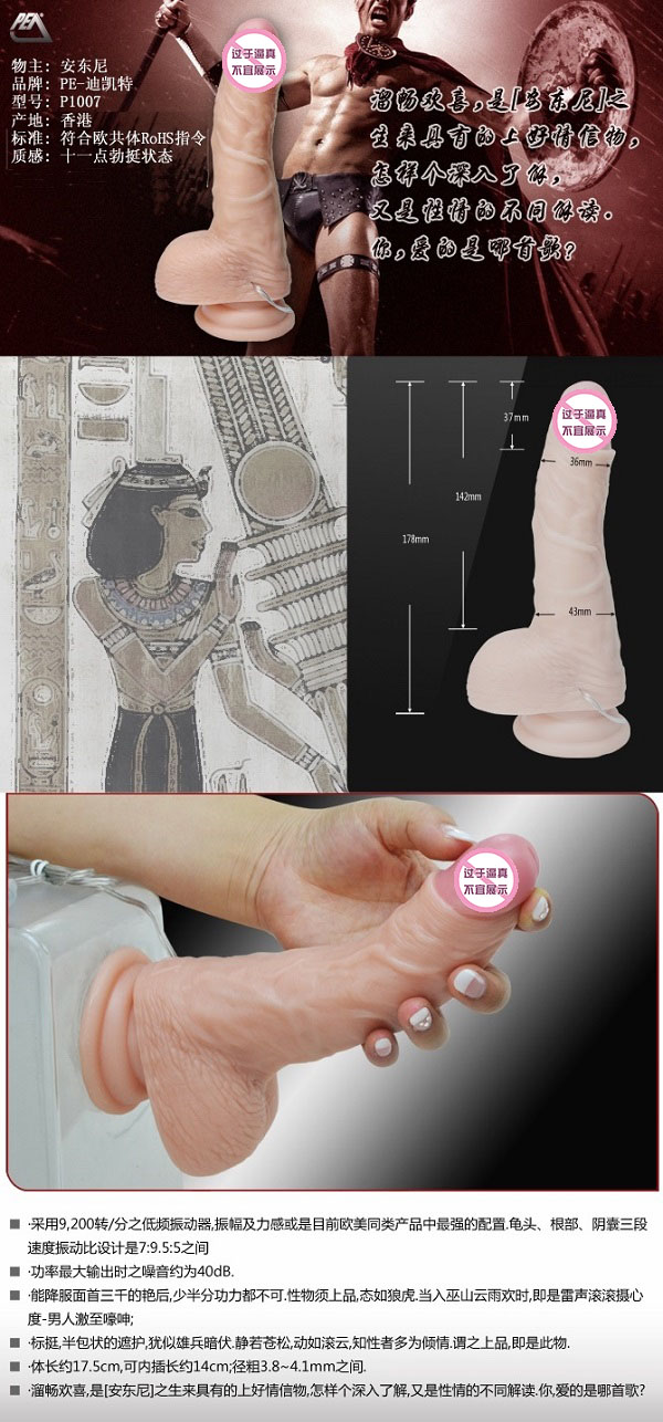 安东尼包皮型壮男仿真阳具是根据安东尼阴茎1:1倒模而成,龟头呈飞边状,是天生的性爱佳物!仿真阳具选用美国食品级硅元素材质制造,茎体上激凸的动脉,不规则粗糙阴囊设计,逼真到你无法想象。仿真阳具采用9200转震动器,震幅是目前欧美最强配置。龟头、根部、阴囊三段震动比设计是7:9:6,降服3000艳后不费半分功力。
