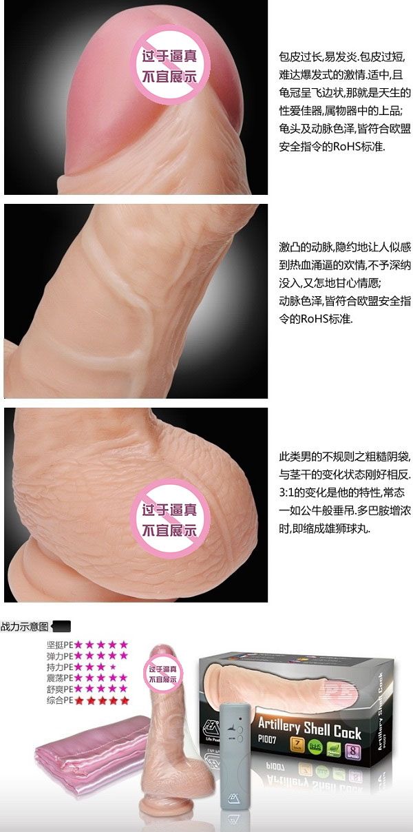 性器具分为2个层次,一种是单纯的慰藉之用,注重器具的造型跟功能,当把欲火扑灭后,空虚感随即而来,第二种注重性与情的抚慰,通过物的感触进行联想性的思维活动,注重人文,性学,社会,心理等文化元素,具有个性化的,有情爱的,有层次感的情趣品。相信这款包皮型壮男仿真阳具能真正解决你心中的欲望。