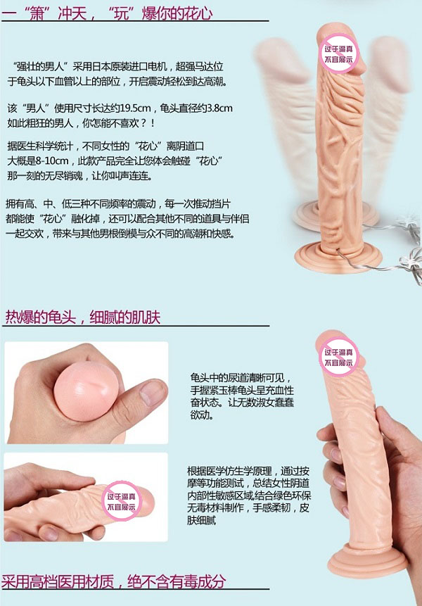 电动逼真阳具采用日本原装进口电机,超强马达位于龟头以下部位,拥有三种种不同的震动频率,轻松让女人达到高潮,阳具有20厘米的使用长度,能直抵女人花心,让你叫声连连,底部配有超强吸盘,可以吸附在任何光滑的表面上,你想要什么性爱姿势都没问题哦。