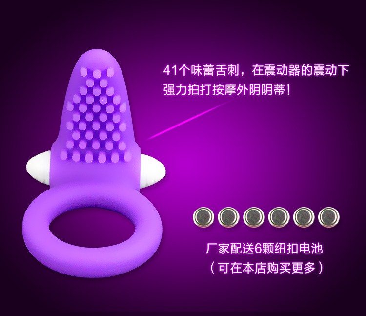 延时震动环使用进口环保医用材料制成,无害无毒无异味,柔软度和弹性极好,套在任何尺寸的阴茎上都不会感受到不适,将它套在阴茎根部,在延时锁精的同时,双方都能感觉到强烈的震动刺激提高性快感,柔软的唇舌舔阴造型设计在震动器的拍打下能有效刺激女性阴帝,让女人高潮迭起,情趣套环采用全身防水设计,浴缸和泳池都是它的战场,低于30分贝的超强静音更是让你为所欲为,是夫妻调情和延时必备的延时震动器。